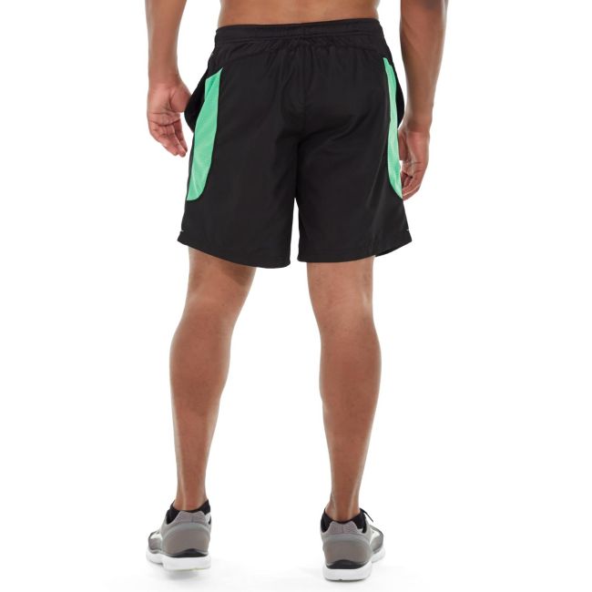 • Black shorts with green accents.