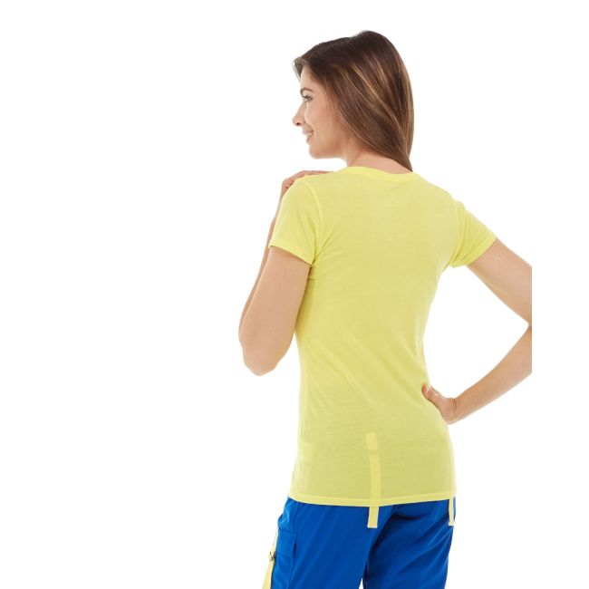• Bright yellow v-neck tee. • Moisture-wicking fabric. • Long-Sleeves. • Machine wash/line dry.