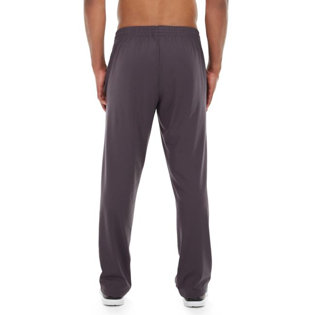 • Dark gray polyester/spandex straight leg pants. • Elastic waistband and internal drawstring. • Relaxed fit. • Machine wash/dry.